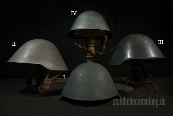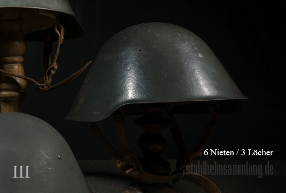 Dafür mussten neue Stahlhelmglocken herhalten, aber auch solche aus früherer Produktion, welche tlw. noch die drei Nieten der vorigen Innenfutterbefestigung, oder zumindest noch deren Löcher zeigen.